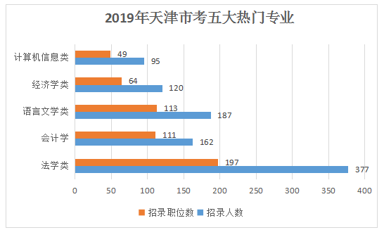 (1)熱門專業(yè)好報考,但競爭力大。據(jù)2019年天津公務員考試報考數(shù)據(jù)顯示,報考人數(shù)最多十大部門的崗位,幾乎都是招考一些熱門專業(yè)或者是不限專業(yè)的職位;