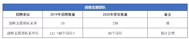 戰(zhàn)略支援部隊是一個大的系統(tǒng),根據(jù)已經(jīng)發(fā)布的機構(gòu)崗位數(shù)量來看,新增的招考數(shù)量和崗位數(shù)量都有明顯的變化,預(yù)計戰(zhàn)略支援部隊招錄文職人員會更多。